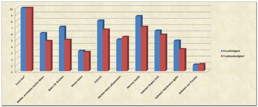 Die Wiederstandsaehigkeit von FineCrete® im Vergleich mit anderen Materialien: